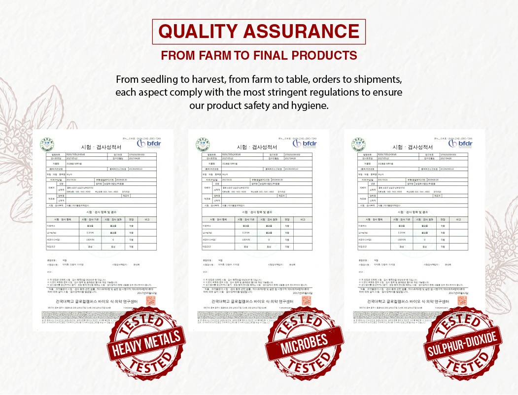 - Sulphur Dioxide& Pesticide Free (SGS Tested)