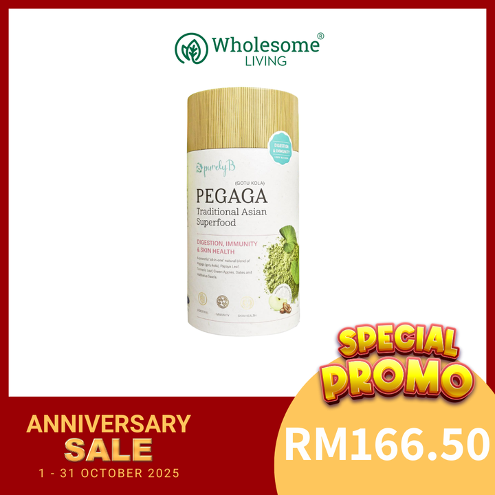 Pegaga by PurelyB is a healing blend of traditional Asian superfoods, composed of some of nature’s most powerful herbs and fruits: Pegaga (Gotu Kola), turmeric leaf, papaya leaf, and green apples and dates. This scientifically-proven blend of herbs and fruits have extraordinary health benefits such as improved digestive and detoxification, strengthened immunity, skin repair and anti-ageing properties, and enhanced brain function and memory. Now you can benefit from all the incredible healing properties in this unique combination - just as generations before us have done! Combined together, this premium blend is powerful & potent and assists with extraordinary health benefits such as: