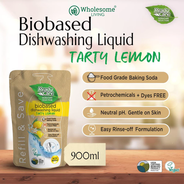 Empowered with USDA Certified Biobased formulation with food grade baking soda and lemon acid. Removes stubborn dirt, dissolving tough greases and deodorize odour effectively. Easy to rinse off and sparkling clean with fresh lemon scent on dishes and glasswares. Neutral pH, biobased and Vegan formulation with plants-derived fragrance. No added petrochemical surfactants, gentle to skin and protect hands from drying out and irritation.