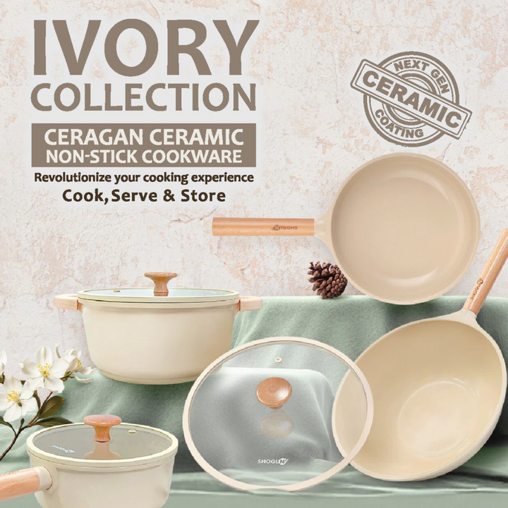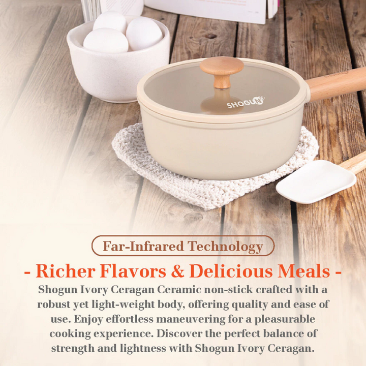 Shogun Ivory Ceragan 20cm Saucepan with Silicone Rim Glass Lid 2.2L