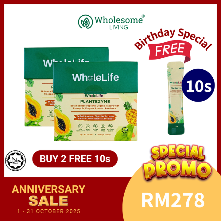 ![[Twin Pack] WholeLife Plantezyme 2g x 30s x 2 boxes FREE Plantezyme 10s](http://wholesomeliving.my/cdn/shop/files/B5vZW17Y68e4d4baec8fd_1759827130.png?v=1759827274&width=1)